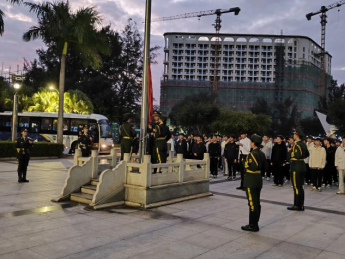 升旗仪式全程气氛庄重而热烈。国旗护卫队队员护送五星红旗至旗杆下,目光坚定不移,脚步铿锵有力。随着国歌奏响,鲜艳的五星红旗缓缓升起,迎风飘扬,全体师生庄严肃立,向国旗行注目礼。