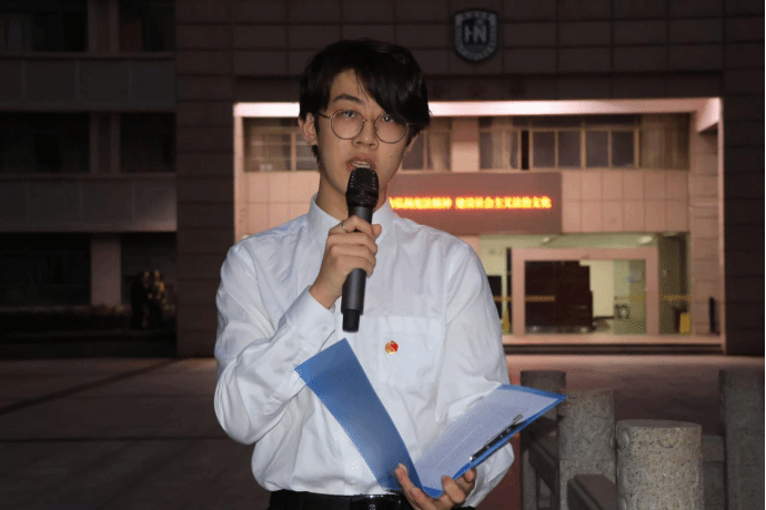 学生代表唐浩然做国旗下演讲。正值期末考试季,他以“立德立身,诚信为本”为主题,阐述了诚信考试的重要性及必要性。他号召朴诚学子始终牢记“质朴为人,至诚为学”的院训,合理安排复习时间,科学制定复习计划,深思笃行,诚信应考,抵制考试作弊现象,拒绝考试不良风气。