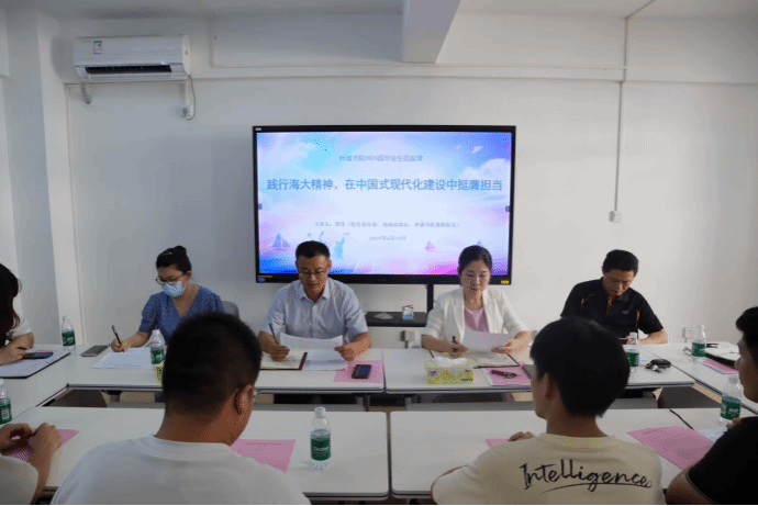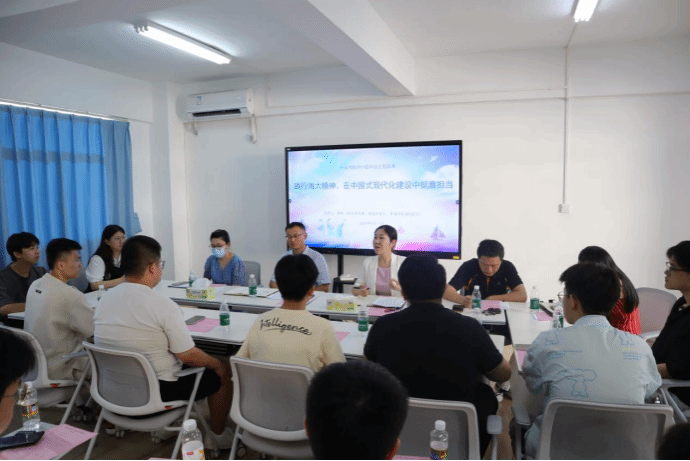 谭勇以“践行海大精神,在中国式现代化建设中挺膺担当”为主题,为毕业生代表讲授了一堂思政课,他阐述了“海大精神”的丰富内涵——即“丹心耀南疆”的爱国奉献精神、“草庐创伟业、荒滩筑新城”的艰苦奋斗精神和“敢闯敢试、敢为人先”的改革创新精神,提出了中国式现代化进程中青年的5个使命担当:一是理想远大、信念坚定,二是刻苦学习、锐意创新,三是敢于斗争、善于斗争,四是艰苦奋斗、无私奉献,五是崇德向善、严守纪律。