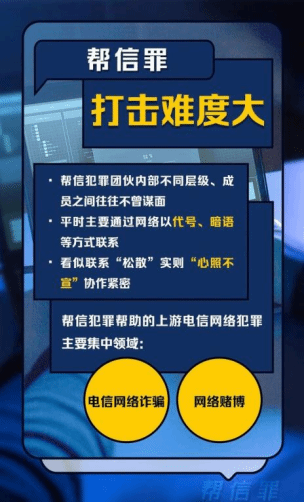 法治意识淡薄是多数人触犯帮信罪的重要原因。 因此,要坚持预防为先,聚焦案件高发群体、重点行业和问题突出区域,加强以案释法,强化警示教育,防止普通群众沦为犯罪“工具人”; 会同教育部门持续深入开展“法治进校园”活动,提升在校学生法治意识; 会同主管部门、行业协会加大对电信、金融、互联网行业从业人员的法治教育力度,提升其职业素养和法治意识。