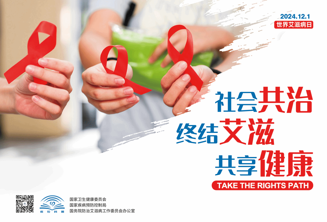 2024年12月1日是第37个“世界艾滋病日”。我国今年宣传主题为“社会共治,终结艾滋,共享健康”(英文主题为“Take the rights path”)。旨在号召政府、部门、单位、个人等各方行动起来,共同担起防艾责任,昂首迈向2030年终结艾滋病公共卫生威胁的目标,形成强大合力,共建健康中国,共享健康成果。