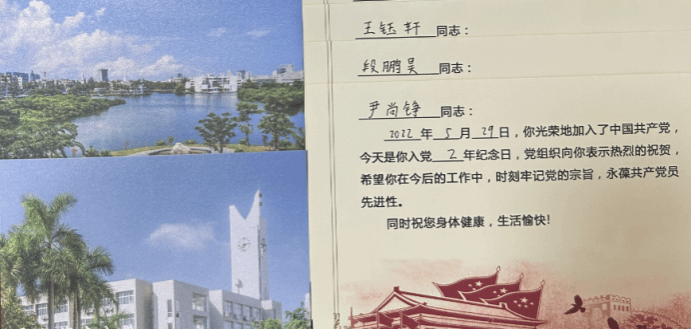 宋海婷为毕业生党员发放了“政治生日”贺卡和明信片,每一张贺卡和明信片都承载着党组织的祝福和期望,她寄语毕业生党员:聚是一团火,散是满天星。愿大家在未来的人生道路上,始终坚定理想信念,永葆共产党人的政治本色,有担当有作为,奋力书写青春新篇章。不论走到哪里,都要牢记党的初心和使命,在新征程、新岗位上继续发光发热。