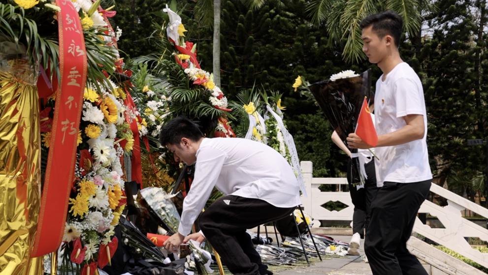 随后,学生党员商文楷、李忠贤、于恒基分别讲述解放海南岛战役及烈士陵园的党史故事、朗诵革命烈士们亲笔写下的就义诗篇,以及分享学习感悟。在场的每一位同志无不对这些革命烈士充满了感动、钦佩和敬仰,大家集体向烈士们默哀,并逐一走到纪念碑下敬献鲜花,表达对先烈崇高的敬意与深切的缅怀。
