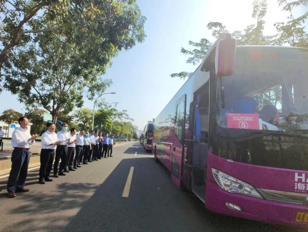 随后,符书记下达出发指令,车队缓缓开动,启程前往儋州。书院党委副书记王茂钢协2名辅导员一同跟车护送。