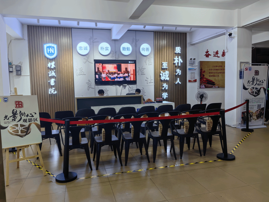 为营造舒适的观影环境和保证活动顺利开展,书院团委青年艺术团的学生骨干们特意布置了专属观影区,准备了相关的观影物资,还制作了“光影铸心”观影日创意“集章卡”,让参与的同学们能够全身心投入到影片观赏中,同时积极进行后期的观影活动打卡。