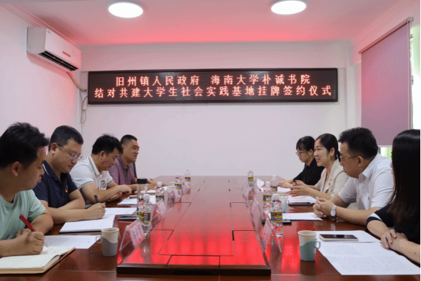 2024年7月18日上午,永利集团88304官网、海口市琼山区旧州镇人民政府举办结对共建大学生社会实践基地签约挂牌仪式。旧州镇党委副书记陈明元、党委组织委员卢晖、常务副镇长黄顺凯,永利集团88304官网党委书记李洋、党委副书记闫治及镇政府工作人员、师生代表参加仪式,仪式由陈明元主持。