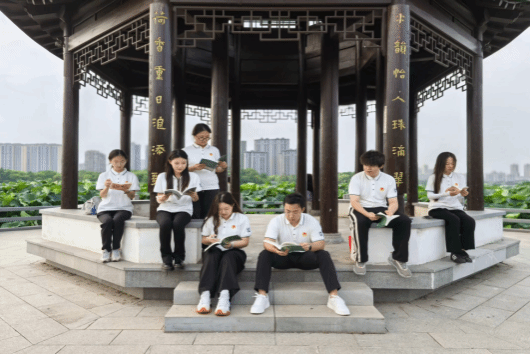 水韵宜人珠滴翠,荷香熏日浪添歌。实践团来到遗爱湖公园湖畔开展东坡主题读书研讨会,偷得浮生一日凉。遗爱湖公园取东坡在黄州作《遗爱亭记》“遗爱”之意以名之,该公园的建成标志着黄冈实现从“文以城兴”到“城以文兴”的历史性嬗变。实践团成员手持安国禅寺住持所赠的诗书,围绕东坡的生平事迹与精神内核展开了激烈的讨论,在书中所写的东坡逆旅人生中感受其乐观、豁达与真性情,在清风徐徐中体悟东坡诗词赋中的精神力量,在遗爱湖的风光美景中探寻东坡文化底蕴。