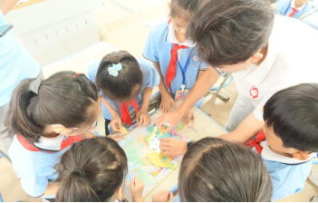 手工课上,在团队成员的带领下,小朋友们尝试了剪纸、制作五星红旗、完成中国地图拼图、制作VR眼镜等。通过亲自动手操作,不仅拓展了小朋友们的思维能力更锻炼了他们的实践能力。