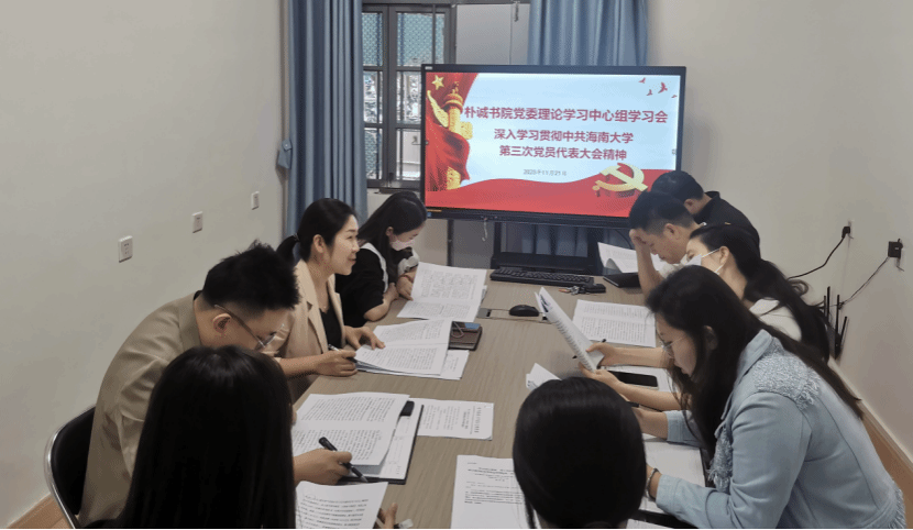 11月21日上午,永利集团88304官网党委理论学习中心组(扩大)在13栋101会议室专题学习海南大学第三次党代会精神。党委书记李洋、副书记闫治及党委委员、辅导员、党支部书记参加学习。