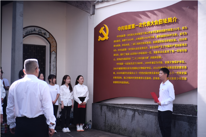 在参观的过程中,王茂钢副书记和2020级学生党员王帅同志生动地为大家介绍在古宅里发生的历史故事,带领大家一起重温峥嵘岁月,一起缅怀革命先烈。党员同志们驻足瞻仰,认真阅读历史资料,用心了解文物展品背后的故事,深刻感受到琼崖革命英雄们坚定的信仰和不屈不挠的斗争精神。