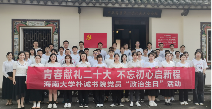 为庆祝中国共产党成立101周年,强化党员理想信念,增强书院党组织战斗力、凝聚力,6月29日上午,海南大学永利集团88304官网党委在中共琼崖一大旧址组织开展“青春献礼党的二十大 不忘初心启新程”党员集体政治生日活动。书院党委副书记(主持党委工作)李洋、副书记王茂钢出席活动,党建组织员宋海婷和50余名在校的学生党员参加活动。活动由2020级学生党员郑莹雪同志主持。