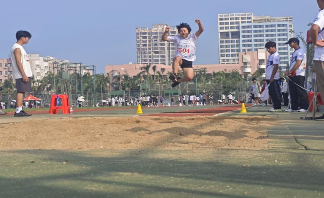 沙坑前,他们腾空而起,每一步助跑都在积攒能量,每一次跳跃都在挑战远方。