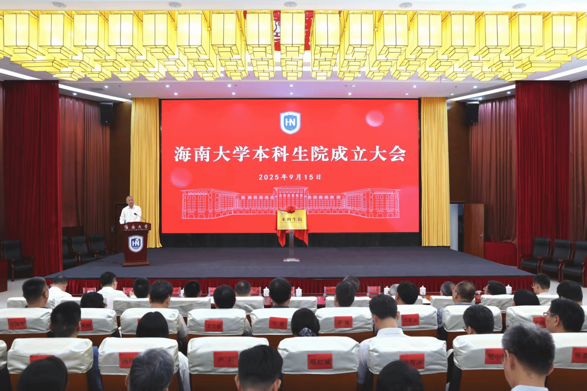 本站讯(记者 王一钦 廖丹丹)9月15日上午,海南大学本科生院成立大会在社科楼二楼报告厅召开。校党委书记李湖,校长、中国科学院院士骆清铭共同为本科生院揭牌并讲话。