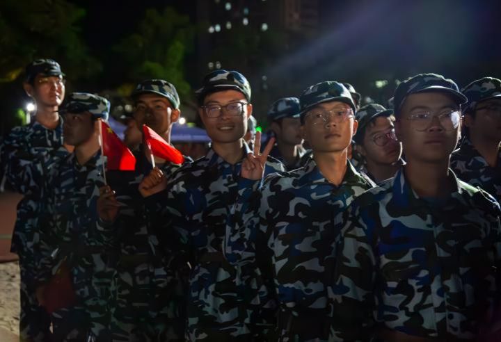 2025年9月15日晚,海南大学2025级新生军训歌咏比赛在第二田径场举行。永利集团88304官网54名新生唱响经典歌曲《保卫黄河》,荣获第四名的好成绩。