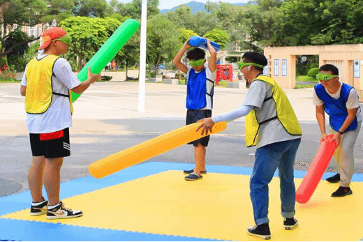 活动为淘汰制,两两队伍抽签对垒(每队6人),获胜的队伍晋级,另一队则淘汰。各组成员依次上场与对垒小组成员进行“趣味盲打”,成员出场顺序自行协商。只能在规定区域内活动,若双脚离开规定区域选手直接淘汰,直到所有队员完成比赛,淘汰人数少的一组获胜。获胜团队直接进入决赛,决赛采取团队作战模式,具体规则赛前告知。