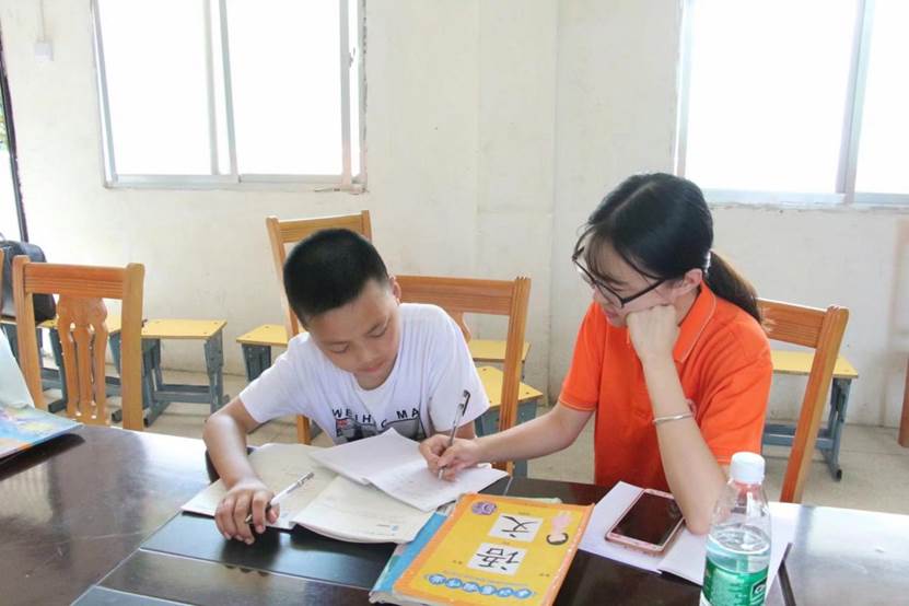 在“三下乡”活动中,辅导贫困地区儿童功课