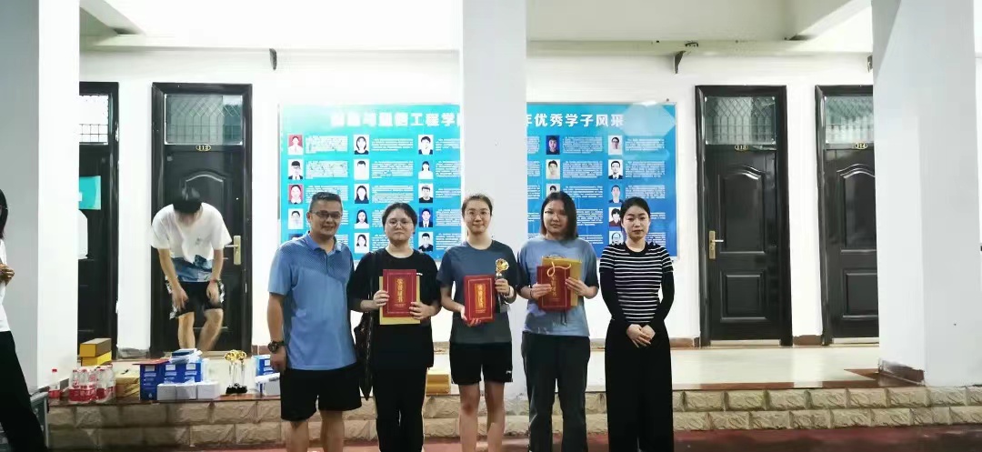 第1届“信息杯”羽毛球赛女子单打亚军(右二为她)