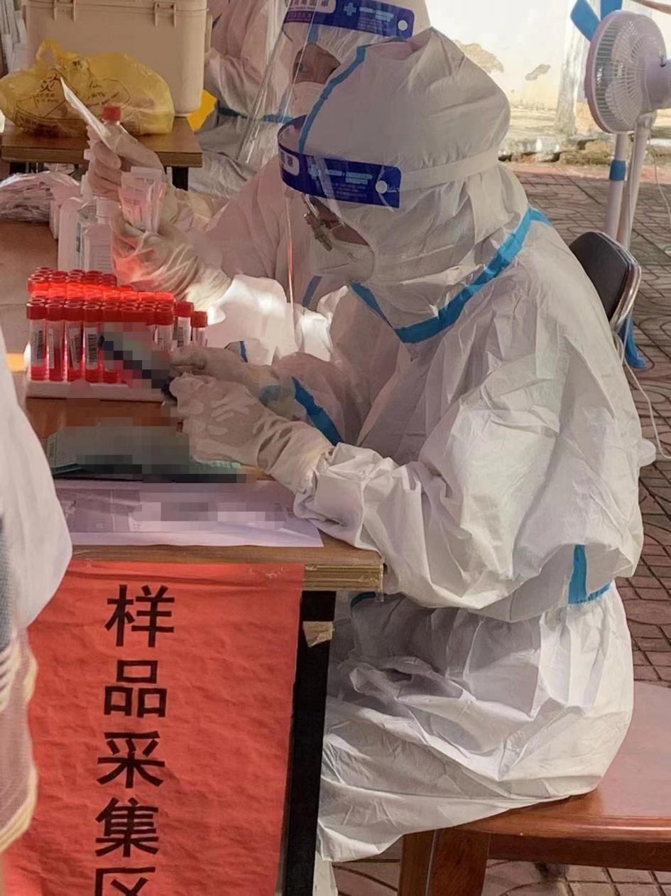 黄兹帅在海南省海口市琼山区凤翔街道核酸检测点服务
