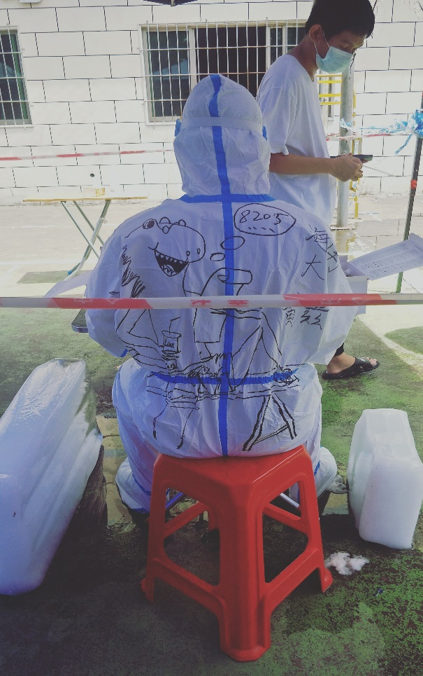 当然,最难熬的是八月份海口的天气。在高温天气下,防护服里面密不透风,当脱下防护服的时候,衣服早已被汗水浸湿,双手已经被汗水浸得发白、有些褶皱。这段经历对于我来说十分难忘,我很荣幸能够作为志愿者,为疫情防控贡献自己的一份力量。