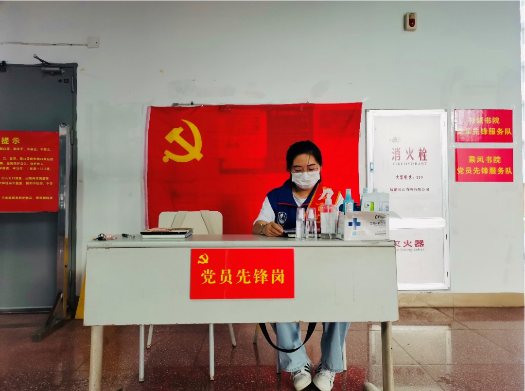 陈艺文在18栋宿舍楼宇党员先锋岗值班