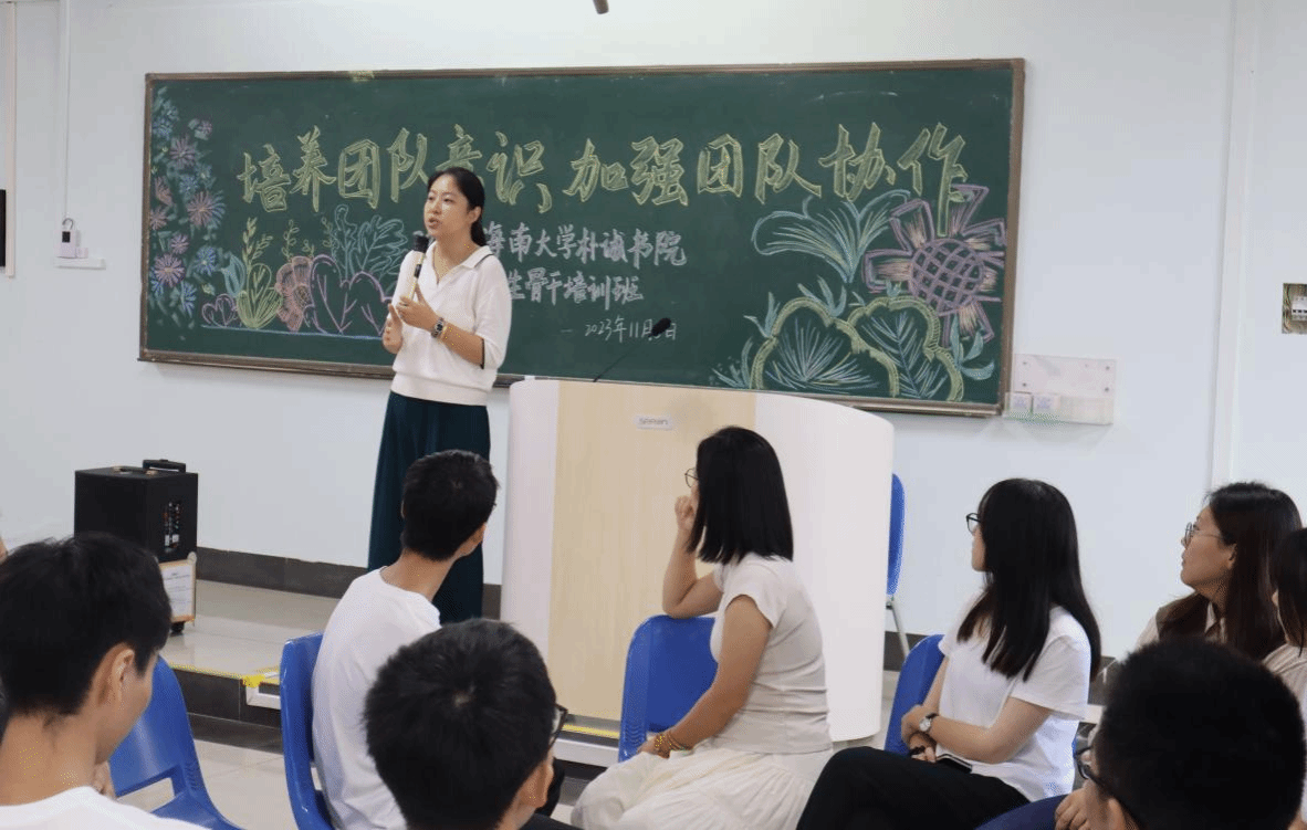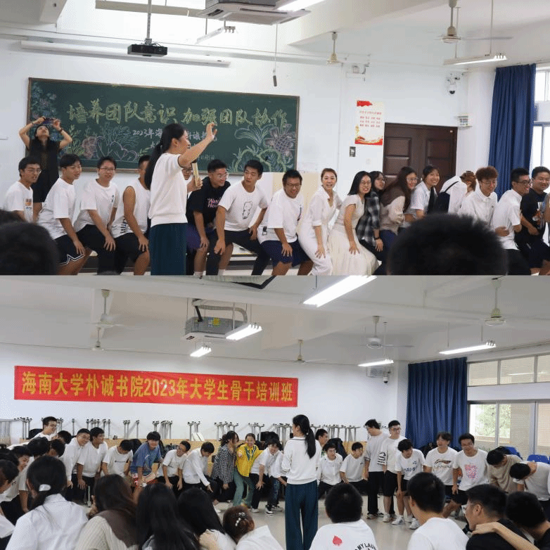 11月5日下午,海南大学永利集团88304官网2023年大学生骨干培训班在4-312教室开展“培养团队意识、加强团结协作”团体辅导。书院校外导师李娟和她的团队带领培训班学员们有序进行每一项环节。