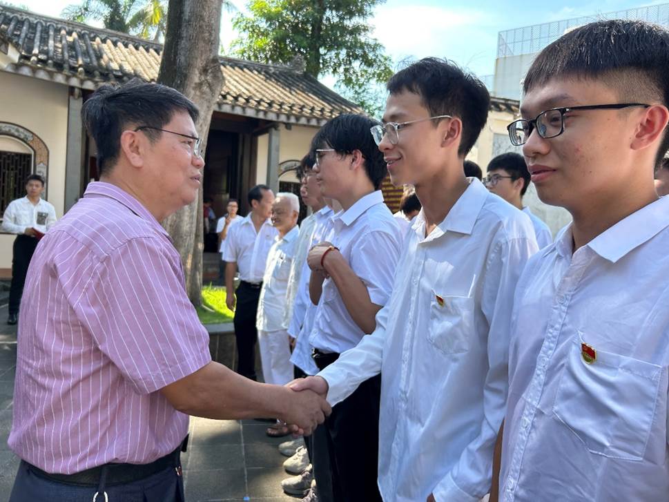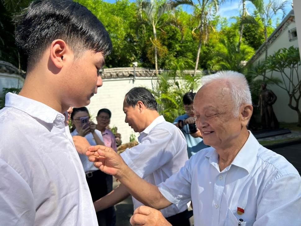 海南大学关工委老党员为新党员佩戴党员徽章