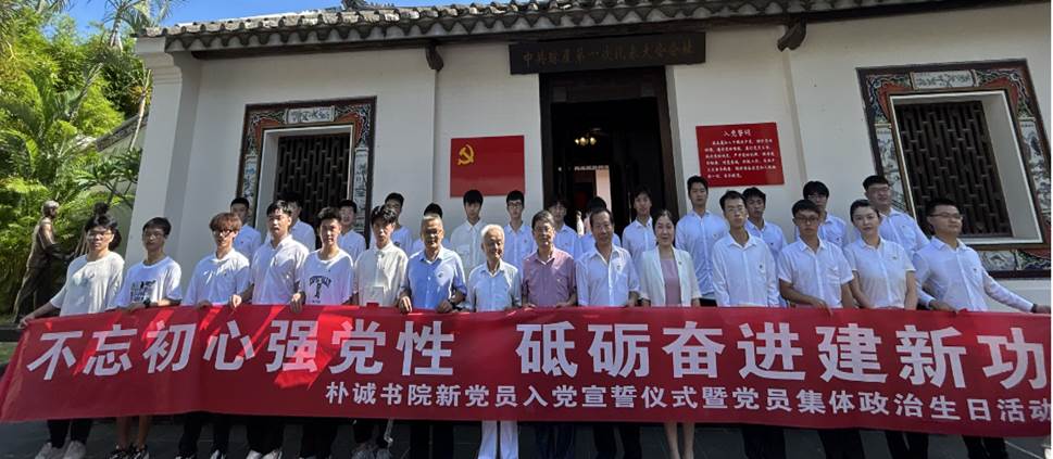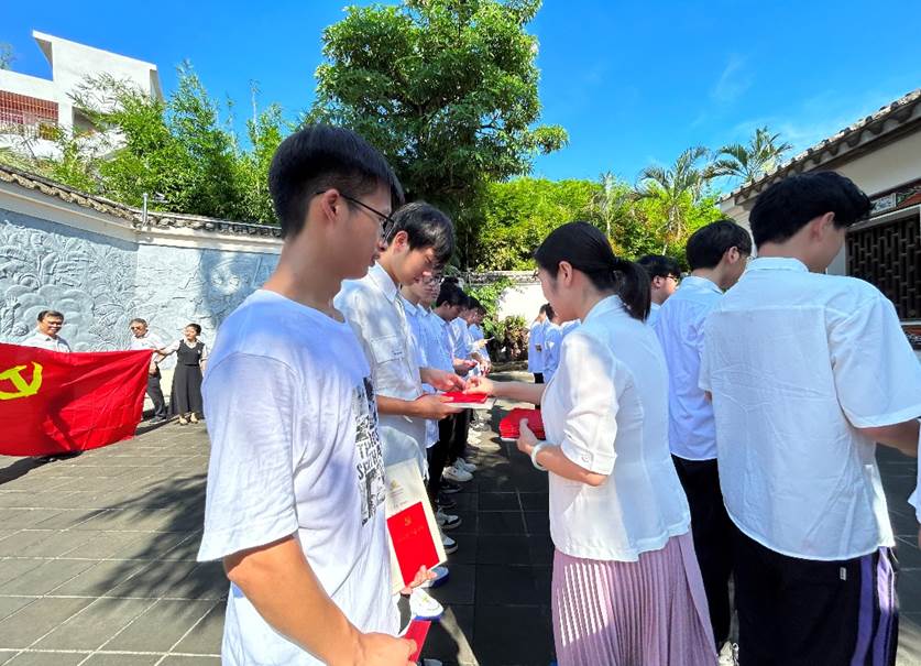 为庆祝中国共产党成立102周年,深入开展学习贯彻习近平新时代中国特色社会主义思想主题教育,赓续红色血脉,凝聚奋进力量,7月1日上午,永利集团88304官网党委组织党员前往中共琼崖第一次代表大会旧址开展“不忘初心强党性砥砺奋进建新功”新党员入党宣誓仪式暨党员集体政治生日活动。海南大学关心下一代工作委员会主任陈封椿、常务副主任林少敏、副主任陈传汉,海南大学离退休人员服务中心党委书记韩力光应邀出席。永利集团88304官网党委书记李洋、副书记王茂钢、党支部书记、2023年上半年新发展和转正党员、入党积极分子代表等30余人参加活动。